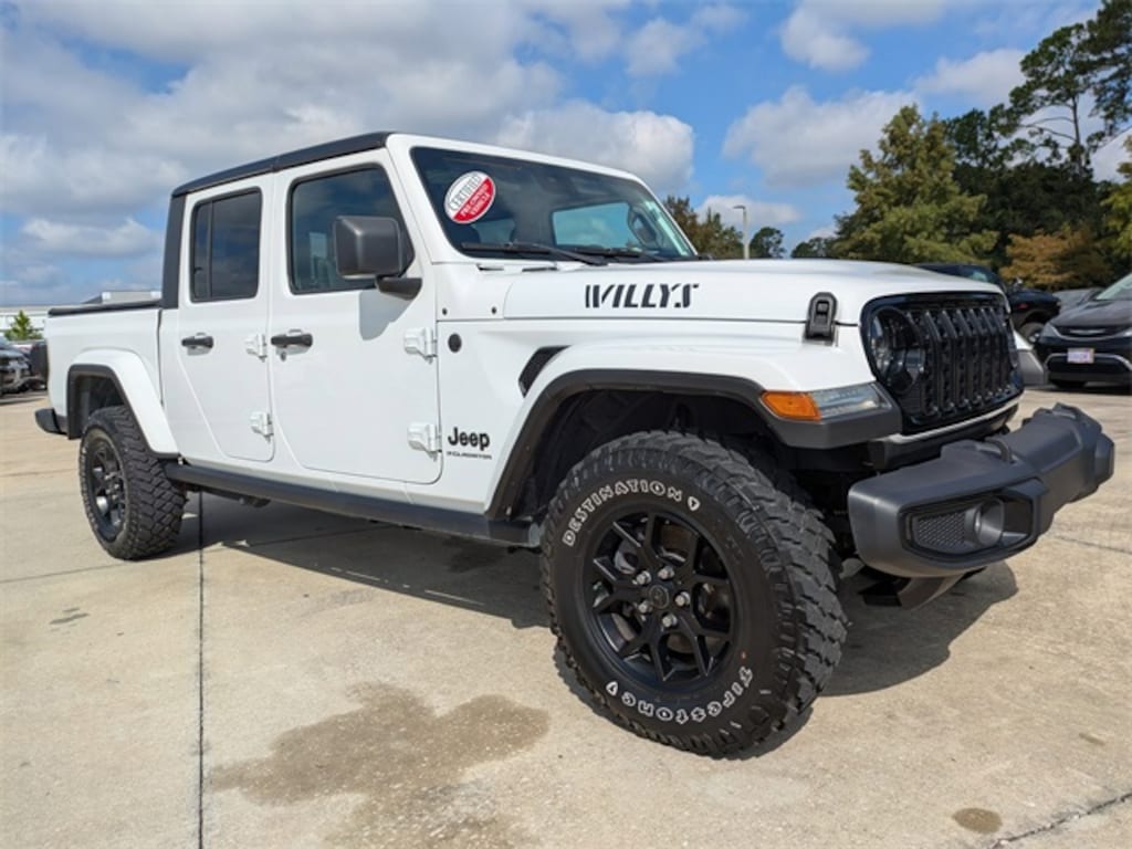 Certified. CARFAX One-Owner. VALUE PRICED. FACTORY CERTIFIED, FRESH OIL CHANGE, ONE OWNER, 125 POINT SAFETY INSPECTION, LOCAL TRADE, FREE CAR FAX REPORT, Gladiator Willys, 4D Crew Cab, 3.6L V6 24V VVT, 4WD, 115V Auxiliary Power Outlet, 12.3" Touchscreen Display, 240 Amp Alternator, 3.73 Rear Axle Ratio, 4-Wheel Drive Decal, 400W Inverter, 4G LTE Wi-Fi Hot Spot, 97 MPH Vehicle Max Speed Calibration, Advanced Brake Assist, Air Conditioning w/Auto Temperature Control, Alexa Built-In, Alpine Premium Audio System, Apple CarPlay, Auto-Dimming Rear-View Mirror, Automatic Headlamps, Auxiliary Switches, Black Grille, Bluetooth Wireless Speaker, Body Color Fender Flares (2-Piece), Cargo Group w/Trail Rail System, Class IV Receiver Hitch, Cluster 7.0" TFT Color Display, Connected Travel & Traffic Services, Connectivity - US/Canada, Convenience Group, Corning Gorilla Glass, Daytime Running Lamps LED Accents, Deep Tint Sunscreen Windows, Disassociated Touchscreen Display, E-Locker Rear Axle, Electronic Stability Control, Emergency Vehicle Alert System (EVAS), Emergency/Assistance Call, Enhanced Adaptive Cruise Control, Exterior 115V AC Outlet, Exterior 230V AC Outlet, For Details, Visit DriveUconnect.com, Front 1-Touch Down Power Windows, Front Door Locks 2-Door Passive Entry, Front Heavy Duty Red Accent Shock Absorbers, Front LED Fog Lamps, Full Speed Forward Collision Warning Plus, Google Android Auto, GPS Antenna Input, GPS Navigation, HD Radio, Heated Front Seats, Heated Steering Wheel, Heavy-Duty Engine Cooling, Integrated Center Stack Radio, Integrated Voice Command w/Bluetooth, LED Premium Reflector Headlamps, LED Taillamps, Lockable Rear Underseat Storage, Media Hub w/2 Charge Only USBs, Mold In Color Bumper w/Gloss Black, MOPAR All-Weather Slush Mats, Off-Road Plus Mode, ParkView Rear Back-Up Camera, Power Heated Mirrors, Power Tailgate Lock, Premium Wrapped Steering Wheel, Protection Sill Rails, Quick Order Package 24W Willys, Radio: Uconnect 5 Nav w/12.3" Display, Rear Heavy Duty Red Accent Shock Absorbers, Remote Keyless Entry, Remote Start System, Roll-Up Tonneau Cover, Security Alarm, SiriusXM Radio Service, SiriusXM w/360L, Speed Sensitive Power Locks, Sun Visors w/Illuminated Vanity Mirrors, Technology Group, Trail Rails, Trailer Hitch Zoom, Universal Garage Door Opener, USB Host Flip, Variably intermittent wipers, Wheels: 17" x 7.5" Painted Black, Willy's Suspension, Willys Hood Decal. Priced below KBB Fair Purchase Price!