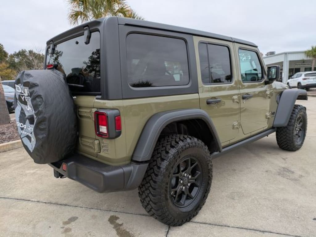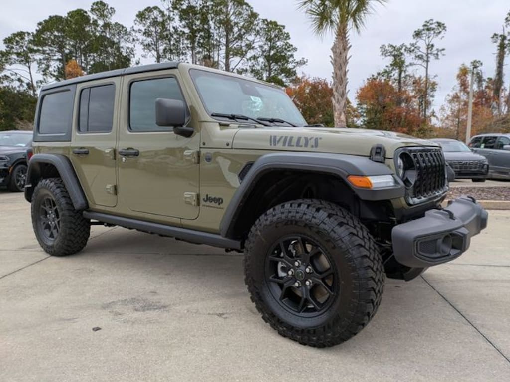 4D Sport Utility Wrangler Willys, 4D Sport Utility, 4WD, 2-Door Passive Entry, Front Door Locks, 4-Wheel Drive Swing Gate Decal, 4.10 Rear Axle Ratio, 7 and 4 Pin Wiring Harness, ABS brakes, Advanced Brake Assist, Air Conditioning with Auto Temp Control, Air Filtering, Automatic Headlamps, Auxiliary Switches, Black Grille with Gloss Black Rings, Body Color 3-Piece Hard Top, Class II Receiver Hitch, Cluster 7.0" TFT Color Display, Compass, Convenience Group, Conventional Differential Front Axle, Corning Gorilla Glass, Dana M210 Wide HD Tube Front Axle, Dana M220 Wide Rear Axle, Daytime Running Lamps LED Accents, Deep Tint Sunscreen Windows, E-Locker Rear Axle, Electronic Stability Control, Emergency/Assistance Call, Enhanced Adaptive Cruise Control, Freedom Panel Storage Bag, Front LED Fog Lamps, Full Speed Forward Collision Warning Plus, Heated Front Seats, Heated Steering Wheel, Illuminated entry, Injection Molded Black Rear Bumper, LED Premium Reflector Headlamps, Low tire pressure warning, Mold in Color Bumper with Gloss Black, Molded in Color Rubicon Highline Flare, MOPAR All-Weather Floor Mats, No Soft Top, Off-Road Plus Mode, ParkView Rear Back-Up Camera, Power Heated Mirrors, Premium Wrapped Steering Wheel, Quick Order Package 22W Willys, Radio: Uconnect 5 with 12.3" Display, Rear Window Defroster, Rear Window Wiper/Washer, Remote keyless entry, Security Alarm, Sun Visors with Illuminated Vanity Mirrors, Traction control, Universal Garage Door Opener, Wheels: 17" x 7.5" Painted Black, Willy's Suspension, Willys Hood Decal.